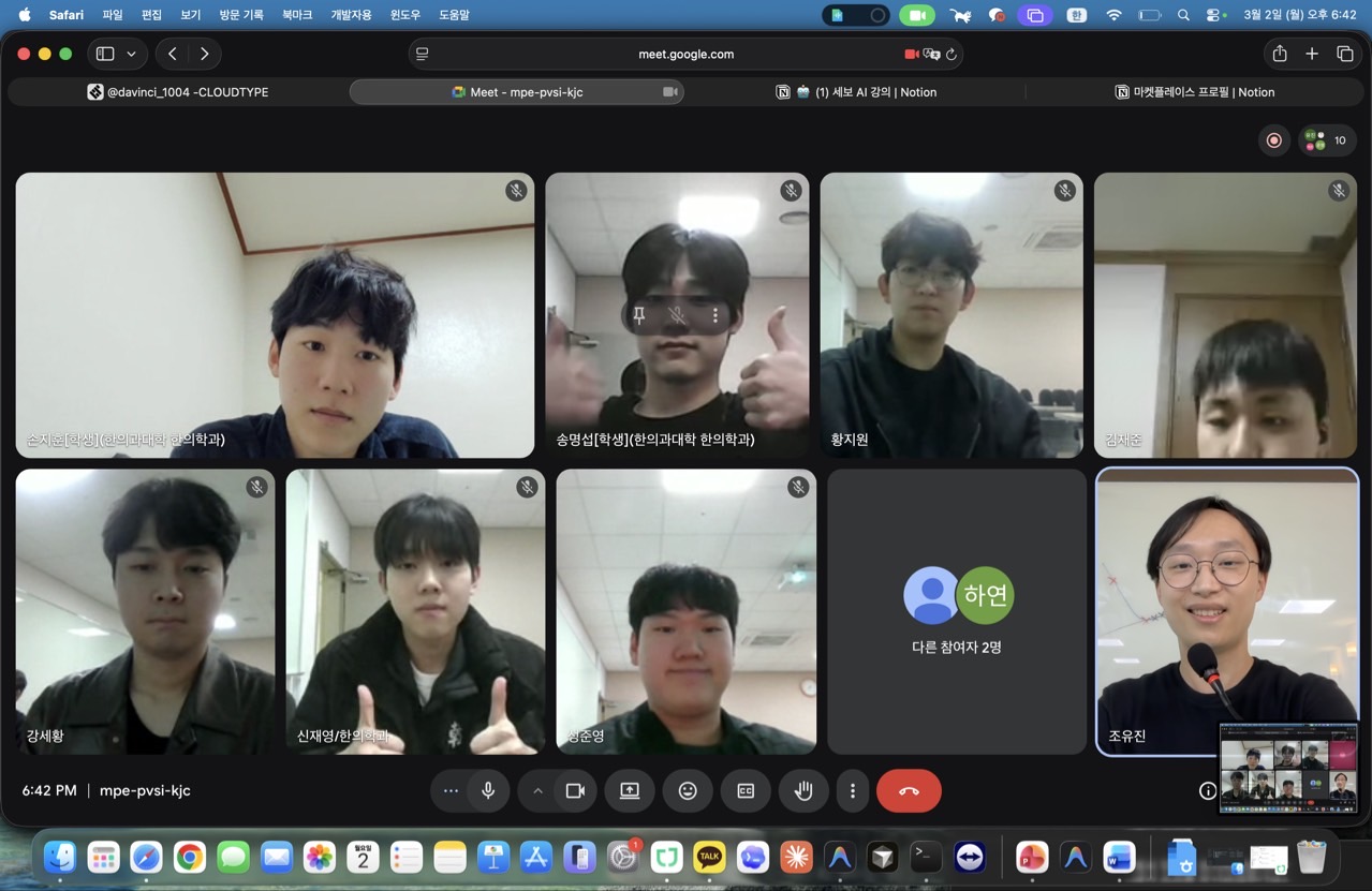 스터디 전 여러 가지 프로그램을 설치하는 준비를 했고, 경희대학교 학관에서는 21학번과 22학번 위주로 모여 종혁이 형과 함께 직접 실습을 할 수 있었습니다.